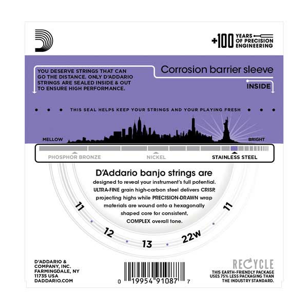 D'Addario EJS57 Banjo 5-string Stainless Steel Wound, Loop E