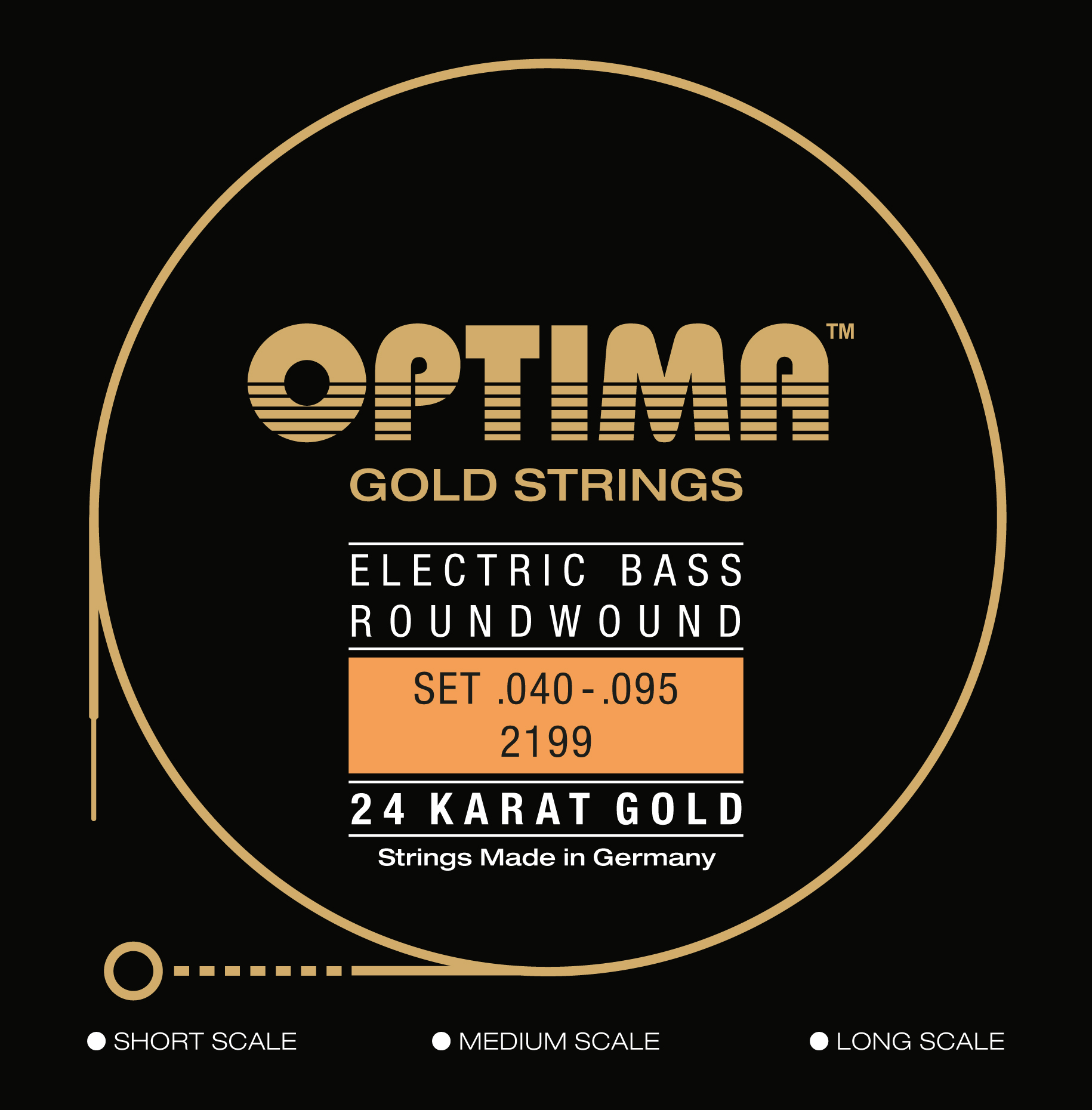 .040 .055 .075 .095 - 24 Karat Gold Plated (Goldauflage); Roundwound; Hexagonalkern - Der Kern dieser Saiten ist verzinnter Sechskantstahl, mit vergoldetem Umspinndraht umwickelt. Glasklar, stark und knackig im Sound. OPTIMA GOLD STRINGS - Die wohl edelste Saite der Welt. Entwickelt und handgefertigt in Deutschland, aus den besten Materialien und für höchste klangliche Ansprüche konzipiert. In dieser Serie spiegelt sich unsere 75-jährige Tradition in der Saitenherstellung wider. Das Ergebnis ist eine Saite in Premiumqualität, die ihresgleichen sucht. Alle Saiten sind mit echtem 24 Karat Gold beschichtet und daher völlig unempfindlich gegen Anlaufen oder Korrosion. Ihre Haltbarkeit liegt bis zu dreimal höher als bei normalen Saiten und sind für Nickelallergiker geeignet. GOLD STRINGS zeichnen sich durch ein brillantes Klangbild und den typischen SOUND OF GOLD aus, den unter anderem auch John Entwistle liebte. 100% Made in Germany.