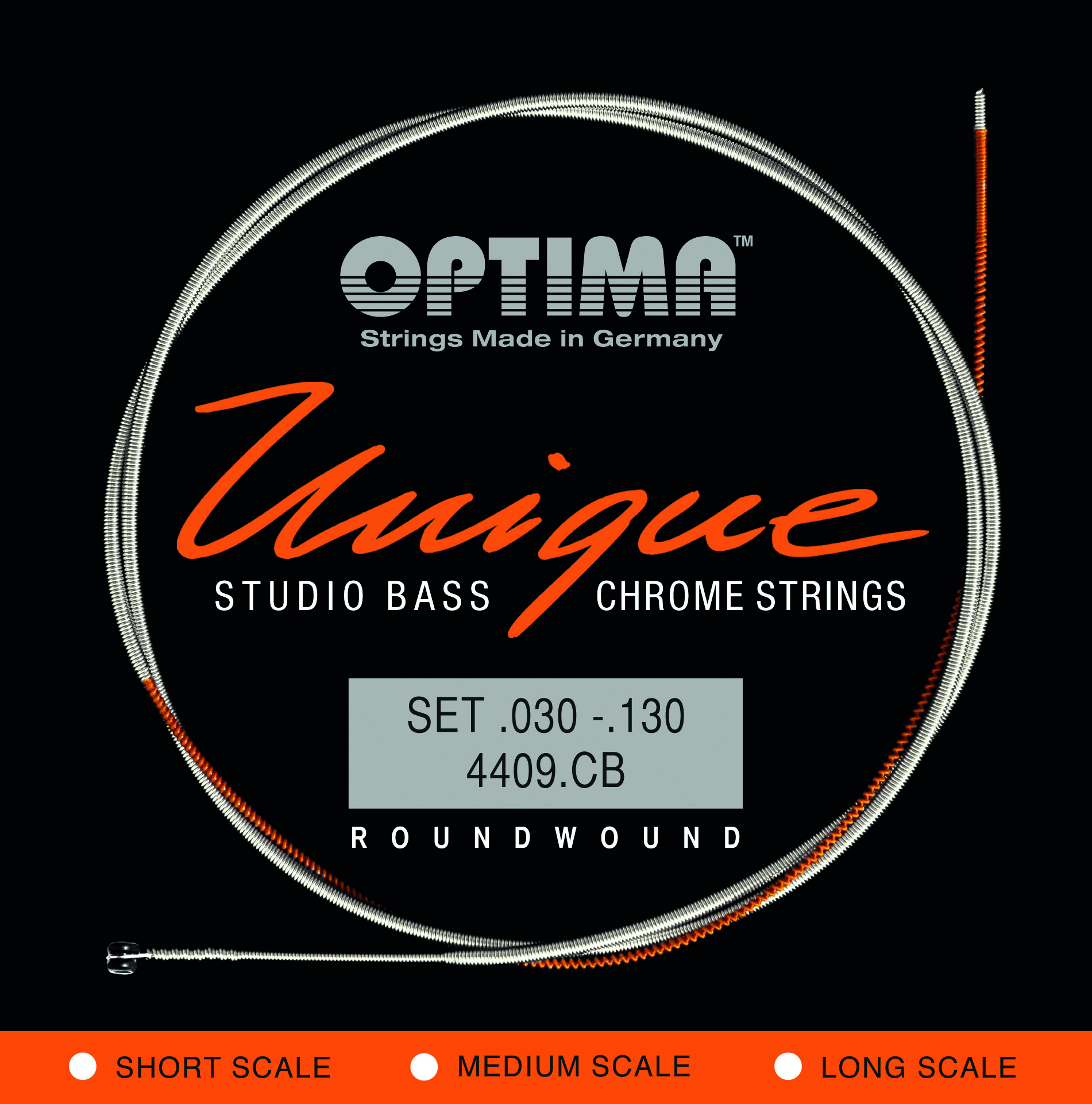 .030 .045 .065 .085 .105 .130 äußerst flexibel + Glasklarer, knackiger Ton - OPTIMA UNIQUE Studio Bass CHROME Strings - Der glasklare Ton, das weiche Spielgefühl sowie die warmen prägnanten Obertöne bei lang anhaltendem Sustain vor allem noch in den obersten Lagen, machen diese Saite wirklich einzigartig. Das Optimum für Ihren Basston, ob nun live oder im Studio. 100% Made in Germany.