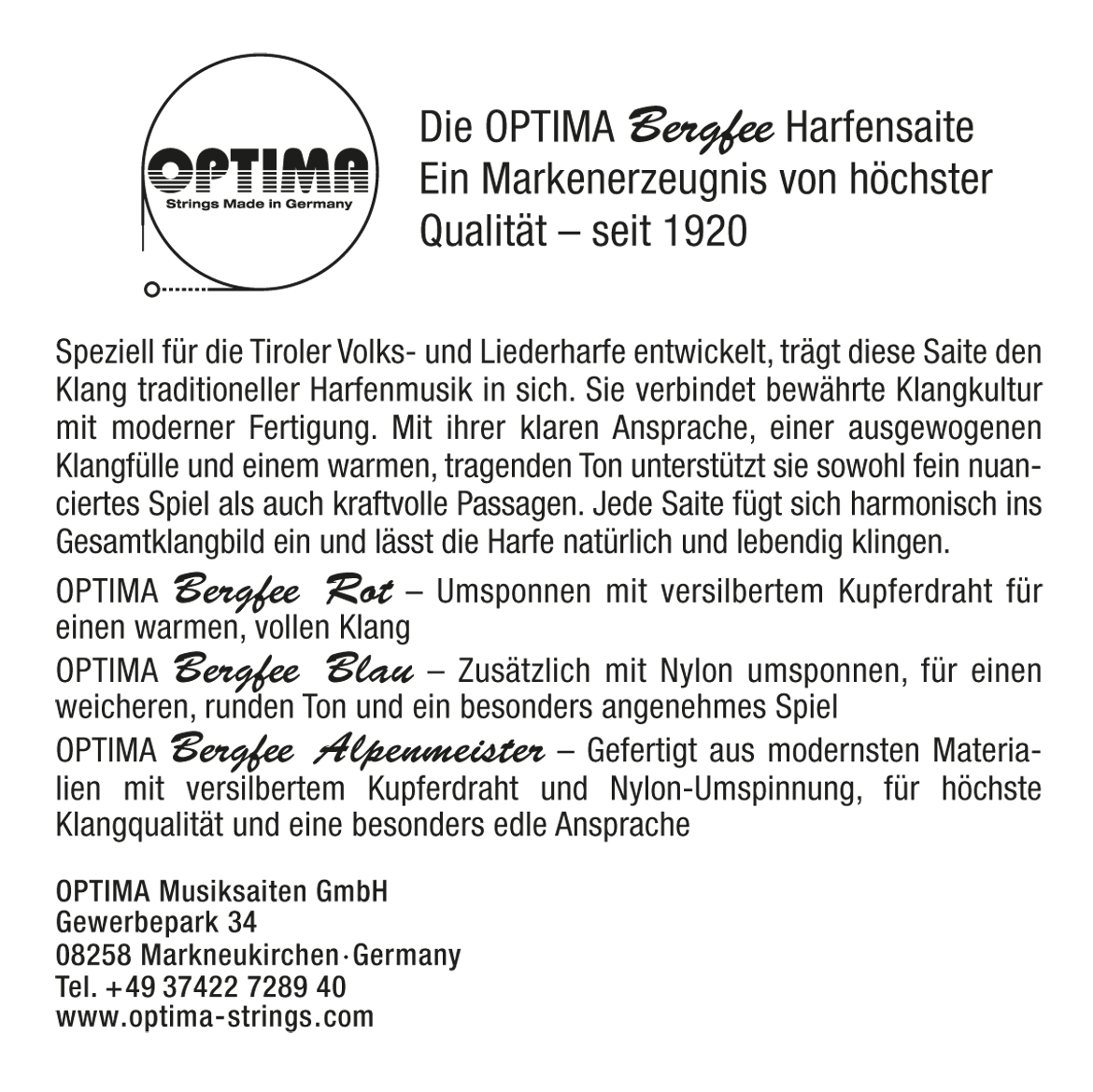 Optima Musiksaiten GmbH Gewerbepark 34 08258 Markneukirchen Deutschland https://www.optima-strings.com/