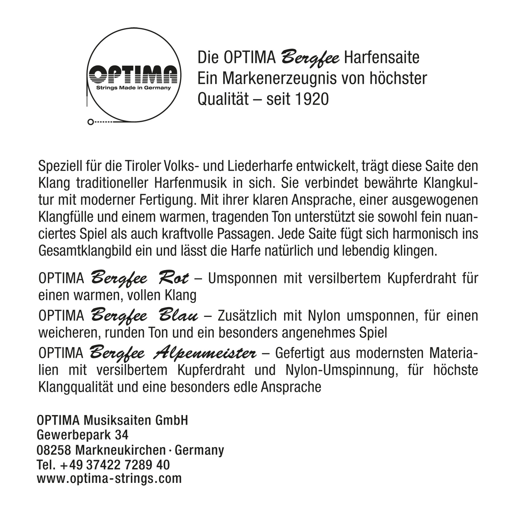 Optima Musiksaiten GmbH Gewerbepark 34 08258 Markneukirchen Deutschland https://www.optima-strings.com/