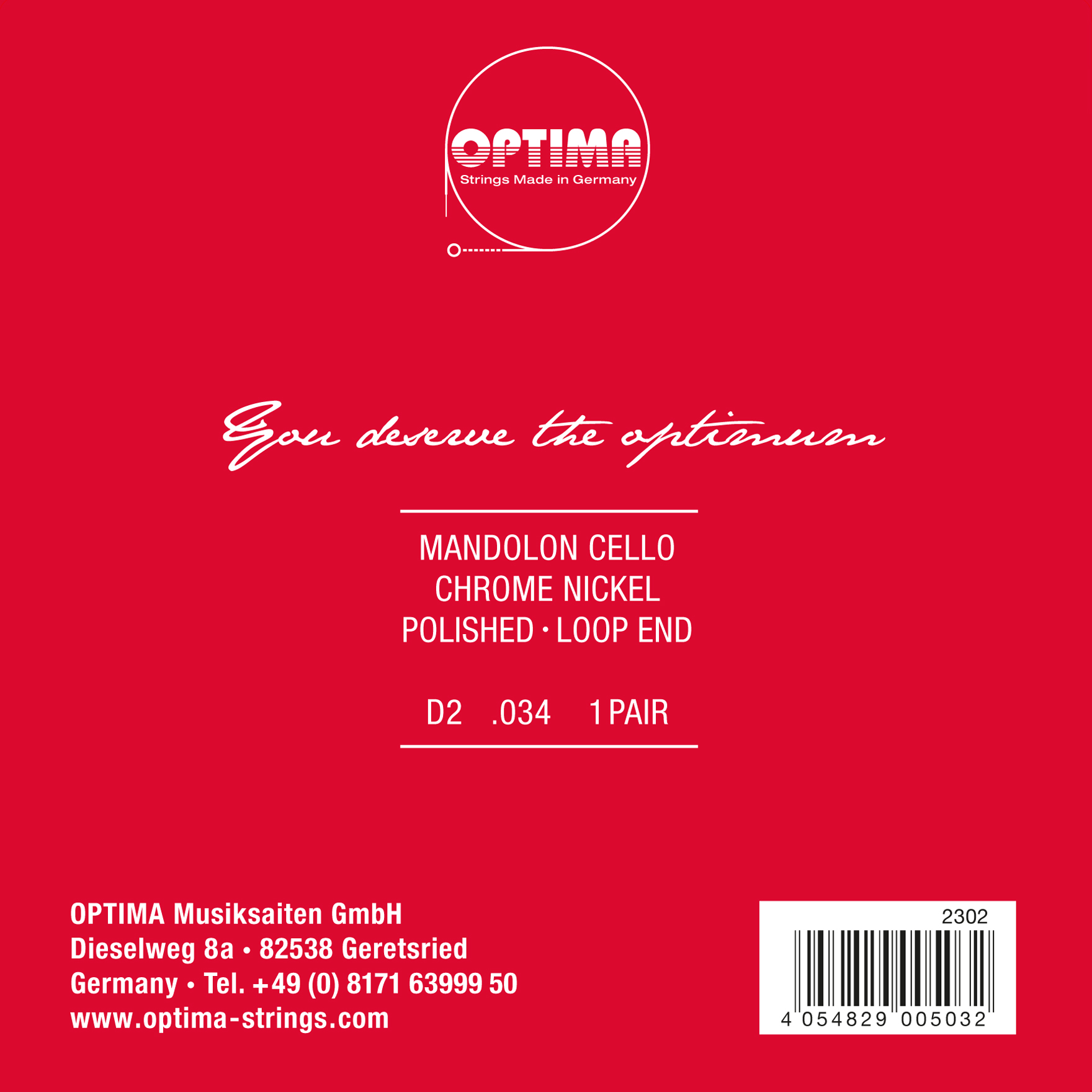 Optima 2302 Mandolon-Cello CHROME RED Label Paar, d