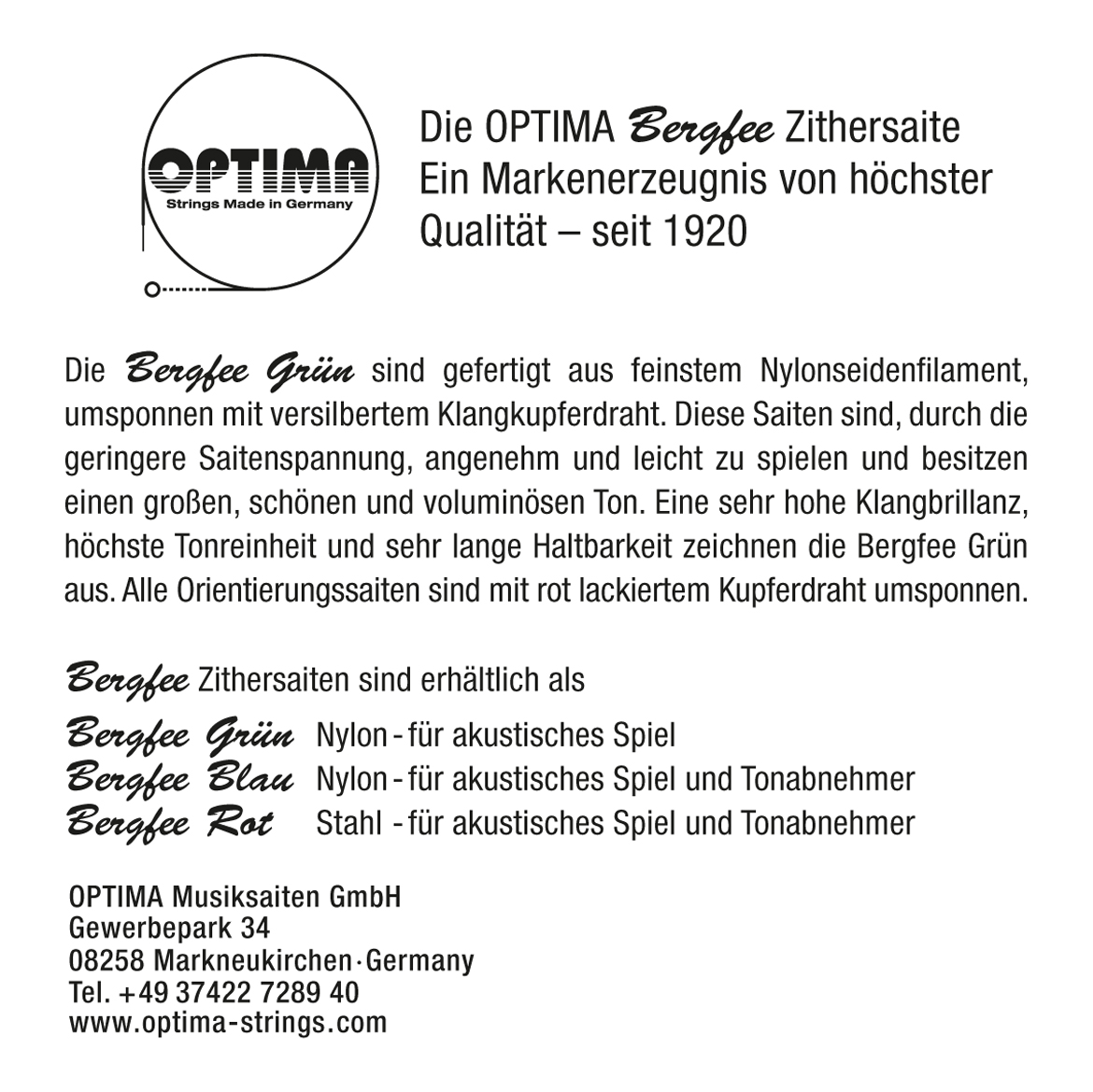 Optima Musiksaiten GmbH Gewerbepark 34 08258 Markneukirchen Deutschland https://www.optima-strings.com/