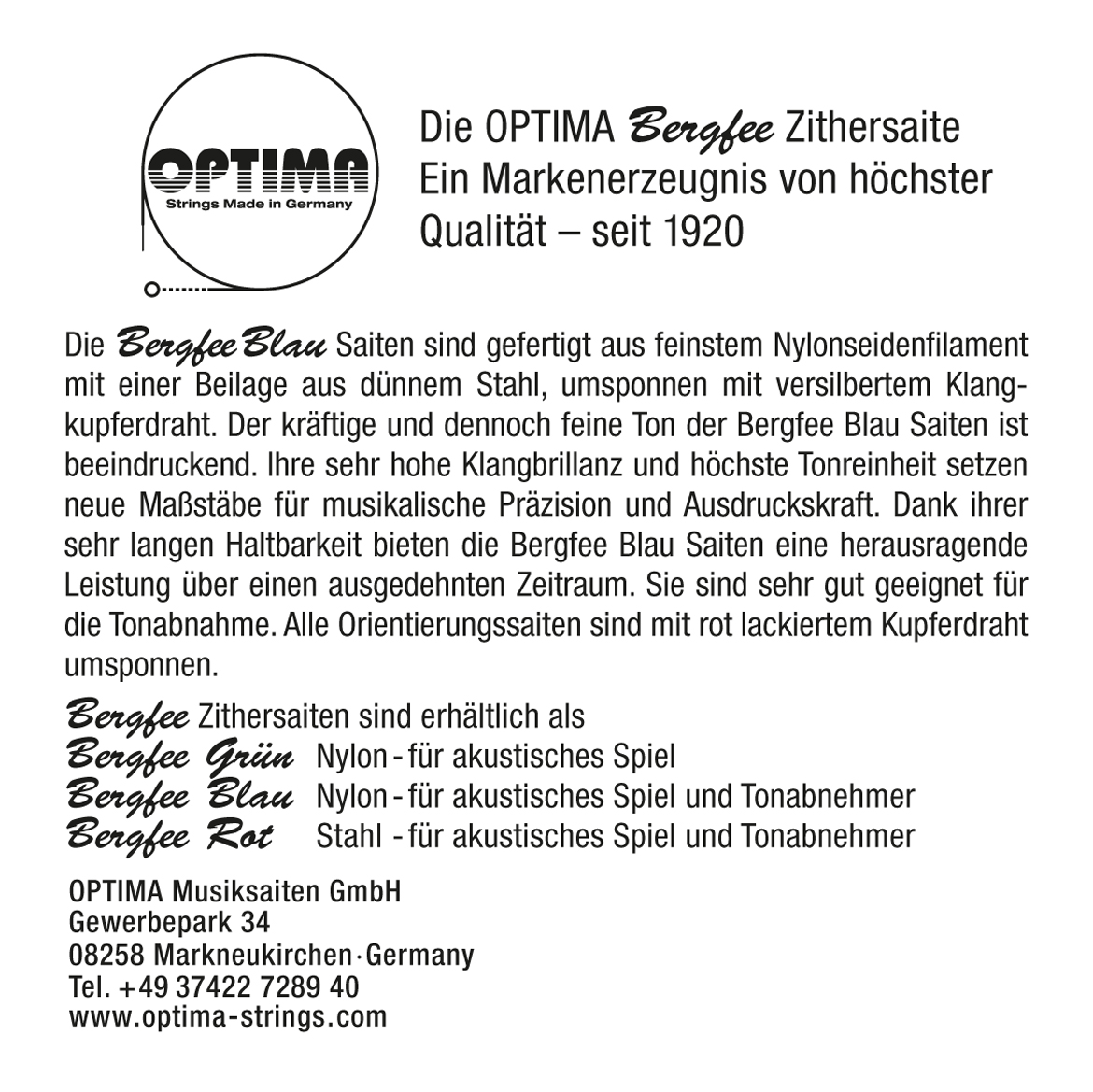 Optima Musiksaiten GmbH Gewerbepark 34 08258 Markneukirchen Deutschland https://www.optima-strings.com/