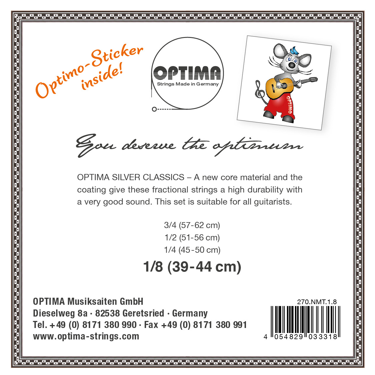 Our OPTIMA SILVER CLASSICS are also available for small scale and children guitars. The strings are specially manufactured for each guitar size. They are accurately calculated and have the same sound quality as the regular 4/4 string sets. This set is delivered with a wound g3 string. The special coating gives these strings high durability.