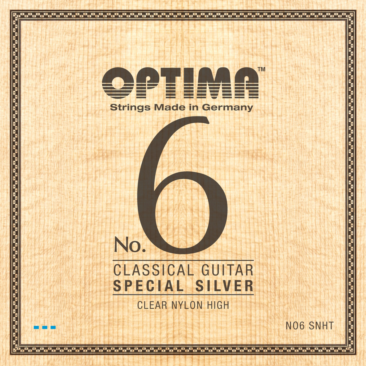 OPTIMA No.6 Every concert guitarist should remember the name of these strings, because they bring forth an entirely new dimension. We have left behind old patterns and materials and have merely reinvented the classical guitar string. The bass strings are made with a wholly new core material, wound with a 24 Karat Gold plated wire, resulting in a string with an extraordinary fast response, a powerful sustainable tone very rich in overtones, where the sound spectrum remains perfectly balanced.