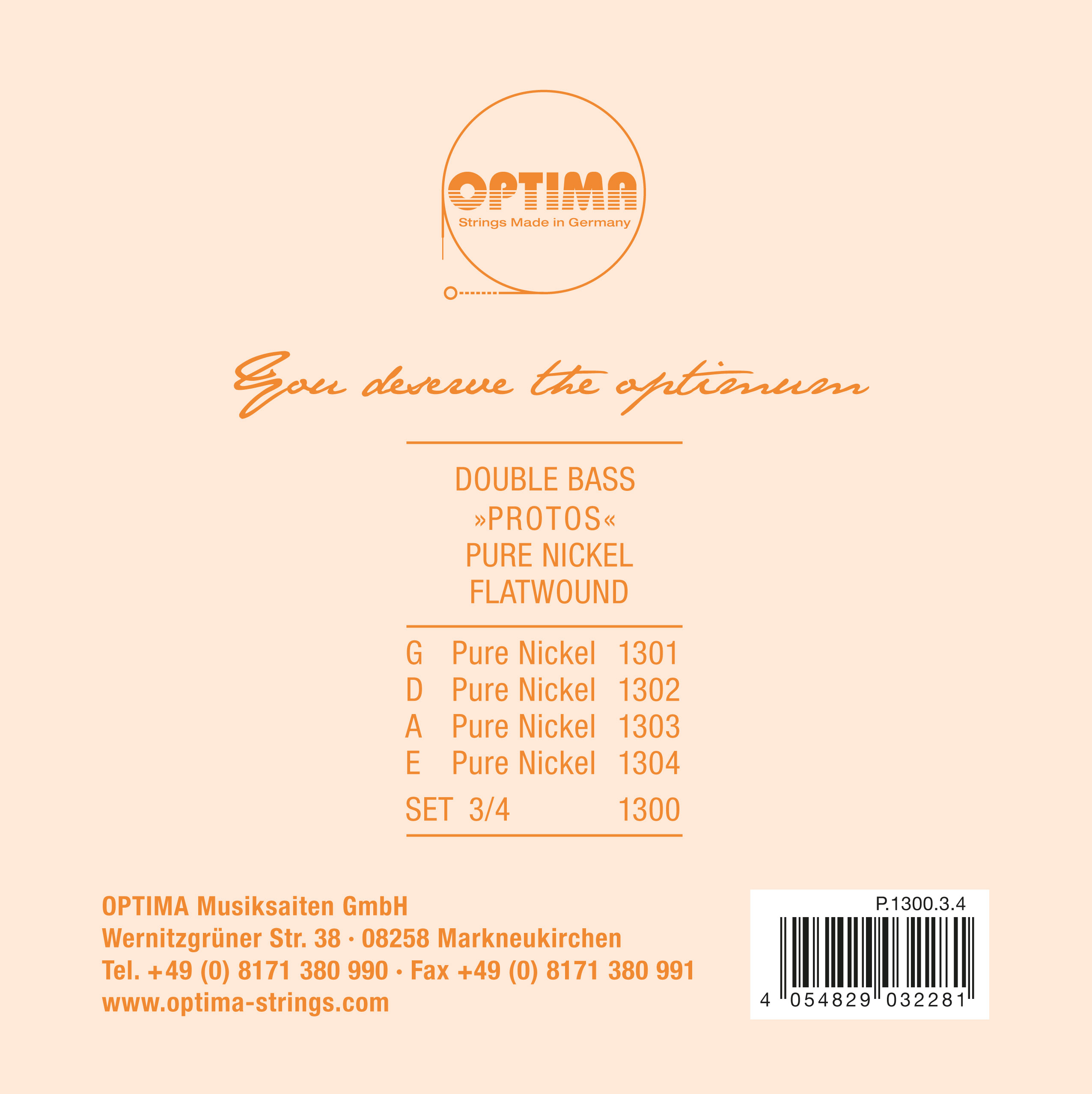 Optima P.1300.3.4 Protos Double Bass Set 3/4