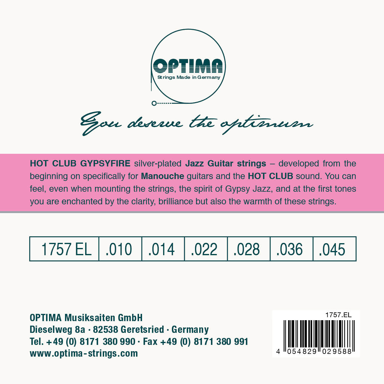 Optima Musiksaiten GmbH Gewerbepark 34 08258 Markneukirchen Deutschland https://www.optima-strings.com/