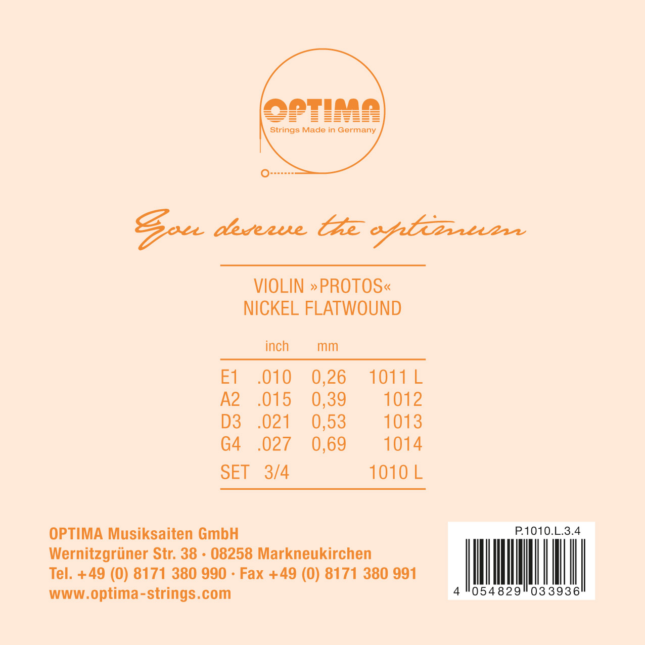Optima P.1010.L.3.4 Protos Violin Set 3/4