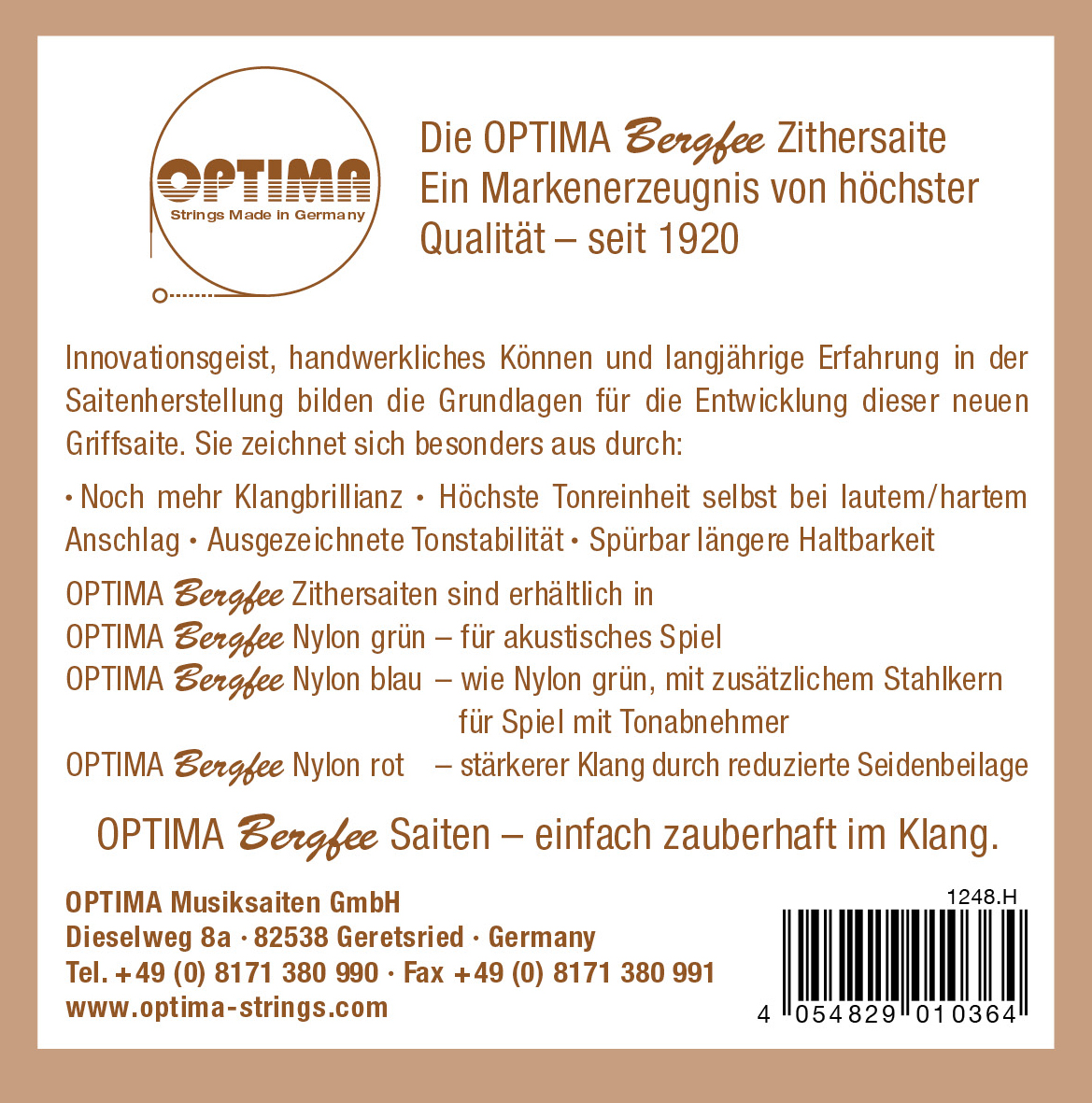 Optima 1248.H Harfenzither BERGFEE Griffsaite g